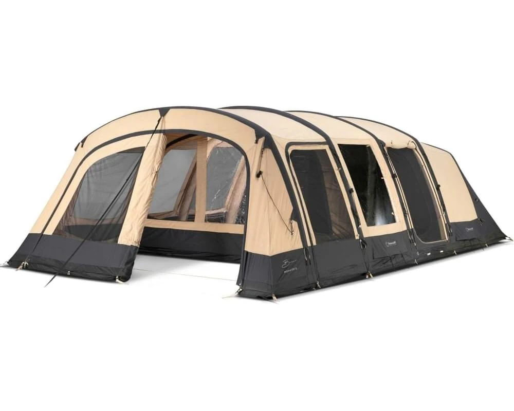 Het buitendoek van de tent is gemaakt van Technisch Cotton. Dit is een katoen variant waar ook een deel polyester in verweven is. Dit maakt de droogtijd wat korter en het uiteindelijke gewicht iets lager dan wanneer de tent van 100% katoen gemaakt is. Met de opblaasbare tunnels is de Airspace 470 TC AIR extra snel op te zetten en de rechte zijwanden geven extra leefruimte en stahoogte in de tent.