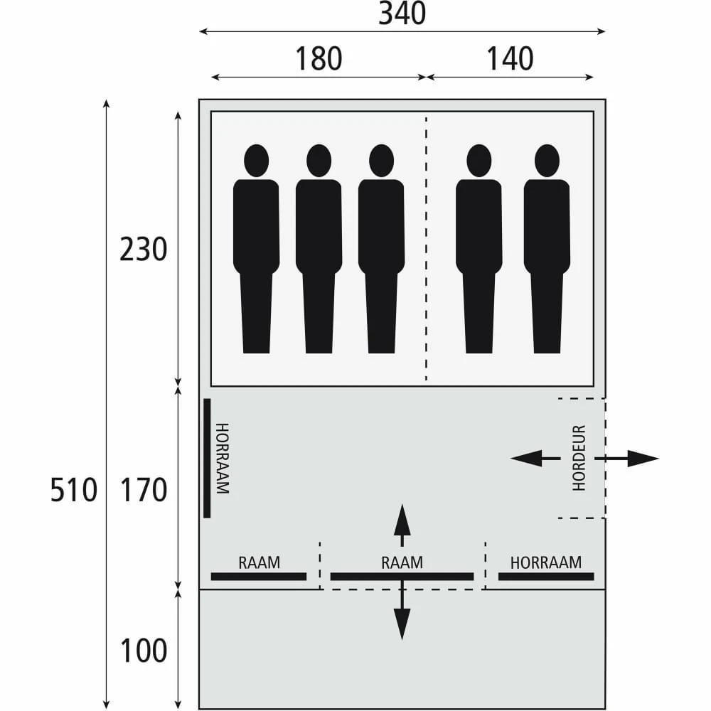 Verder beschikt deze veelzijdige tent nog over een volledige horrengaasdeur en horrengaas aan de achterzijde van de binnentent. Aan weerzijden van de tent zit een handig stroomkabel doorvoersysteem die voorzien is van een ritssluiting.