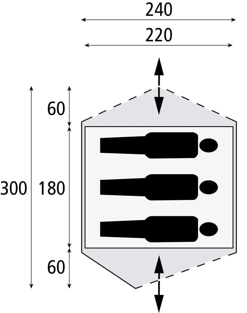 Een volledig ventilerende binnentent laat warme lucht beter uit de tent stromen terwijl er frisse lucht goed naar binnen kan. Ook heeft de Stratos 240 aan beide kanten horrengaasdeuren. Met 2 ingangen kan je beter de tent in- en uitstappen zonder dat je eerst over je reismaatje hoeft te kruipen. Afhankelijk van het soort bedden die je gebruikt, kan je met 2 of 3 personen in de tent overnachten.