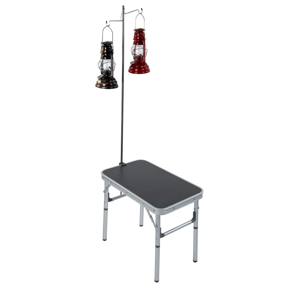 Vaak is het fijn om op de camping een lampje boven de tafel te hebben schijnen om heerlijk een boek te kunnen lezen, te puzzelen of gezellig een spelletje te spelen met z’n allen. In de voortent is dit vaak geen probleem, maar het wordt wat lastiger als je bijvoorbeeld met alleen de tent op reis bent. Bo–Camp heeft daarvoor een Lampstandaard die eenvoudig te bevestigingen is op je tafel door middel van een klem. Aan de standaard zitten twee Haken waaraan je je lamp kunt ophangen, perfect voor de late uurtjes.