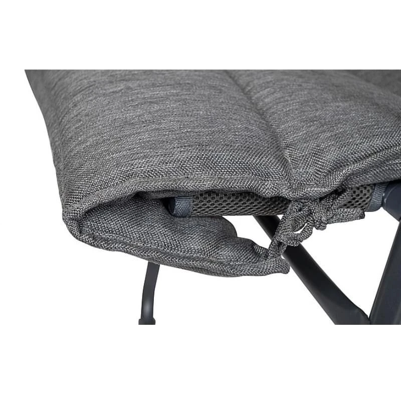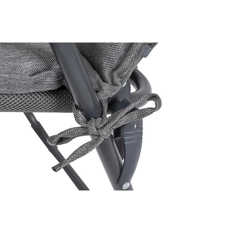 Dit kussen van Bo-Camp blijft altijd netjes op zijn plaats zitten door de meerdere bevestigingspunten. Voorzien van een omgestikte rand bovenin en halverwege en onderaan koortjes om de hoes mee vast te maken aan je campingstoel kan dit kussen geen kant op. Je kan hem dus gemakkelijk in je stoel laten zitten, ook als je hem inklapt of opbergt.