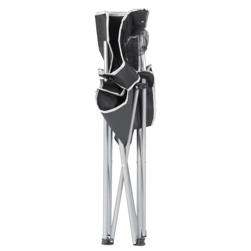 De stoel van Bo-Camp is een praktische vouwstoel. De stoel is eenvoudig op te vouwen en makkelijk mee te nemen in de meegeleverde draagtas. Het frame is gemaakt van staal en de opvouwbare campingstoel heeft een nylon bekleding. In een van de “armleuningen” zit een houder voor een flesje drinken of een beker die hierin past. Zo kan je lekker blijven zitten.