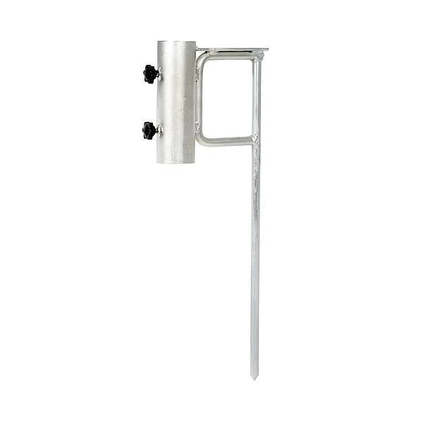 De kwaliteit van deze parasolgrondpen is stevig en robuust. Hij kan een parasol steel met een diameter tot 42 millimeter aan. De pin kan direct de grond in en door middel van twee stelschroeven kan de parasol stevig worden vastgezet. Bij een harde ondergrond kan je hem met een hamer de grond in helpen.