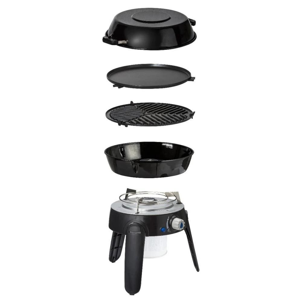 - Inclusief pannendrager, barbecuerooster, bakplaat, deksel en draagtas