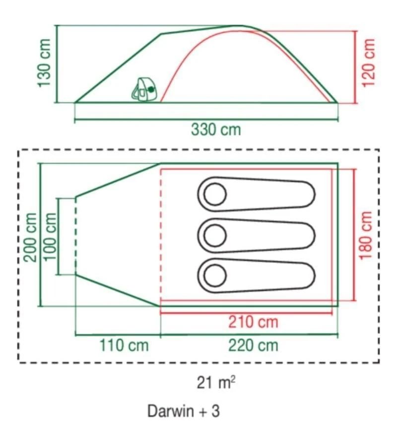 Deze sportieve bijzettent van Coleman is ideaal voor naast de caravan of festivalbezoeken. Zo biedt de Darwin 3 Plus polyester koepeltent namelijk veel ruimte, zowel in het slaapgedeelte als voor het leefgedeelte. Gecombineerd met de grote hoeveelheid ventilatie door het ingebouwde ventilatievlakken zorgt dit ervoor dat je het niet snel benauwd zal krijgen. Kleine ontwerpkeuzes zoals de opstaande rand van de tentvloer en de PVC ramen in de voorzijde van de tent zorgen voor een zeer ergonomische tent waarin je je snel comfortabel zal voelen. Daarnaast zorgt zijn relatieve lichte gewicht (4,9 kg) en kleine pakvolume ervoor dat je deze koepeltent makkelijk mee kan nemen.