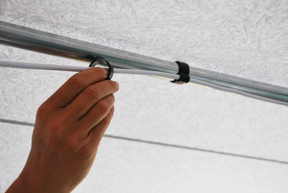 Met de kabelclips van Isabella wordt het heel eenvoudig om de snoeren en kabels vast te zetten in de voortent. Je klikt ze simpelweg op de tentstangen met een diameter van 22 tot 32 mm. Zo heb je geen last meer van snoeren op de vloer in de voortent.