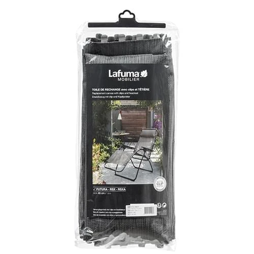 Deze vervangingsset van Lafuma is geschikt voor de Futura, RSX en RSXA relaxstoelen. Het doek is voorzien van clips en past hiermee niet op modellen die voor de bevestiging gebruik maken van een elastiek. Het doek is 48 cm breed en gemaakt van batyline, een robuuste kunststof die goed tegen zon en regen kan. Door de open weefstructuur is dit doek ventilerend en waterdoorlatend.