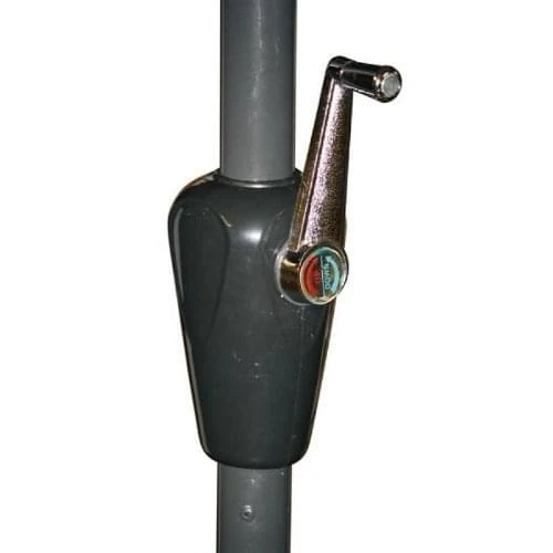 De Libra parasol van Lesli Living heeft een sterk antraciet kleurig aluminium frame met molen, 8 metalen baleinen en een veersysteem waardoor hij ondanks zijn grootte makkelijk op te zetten is.