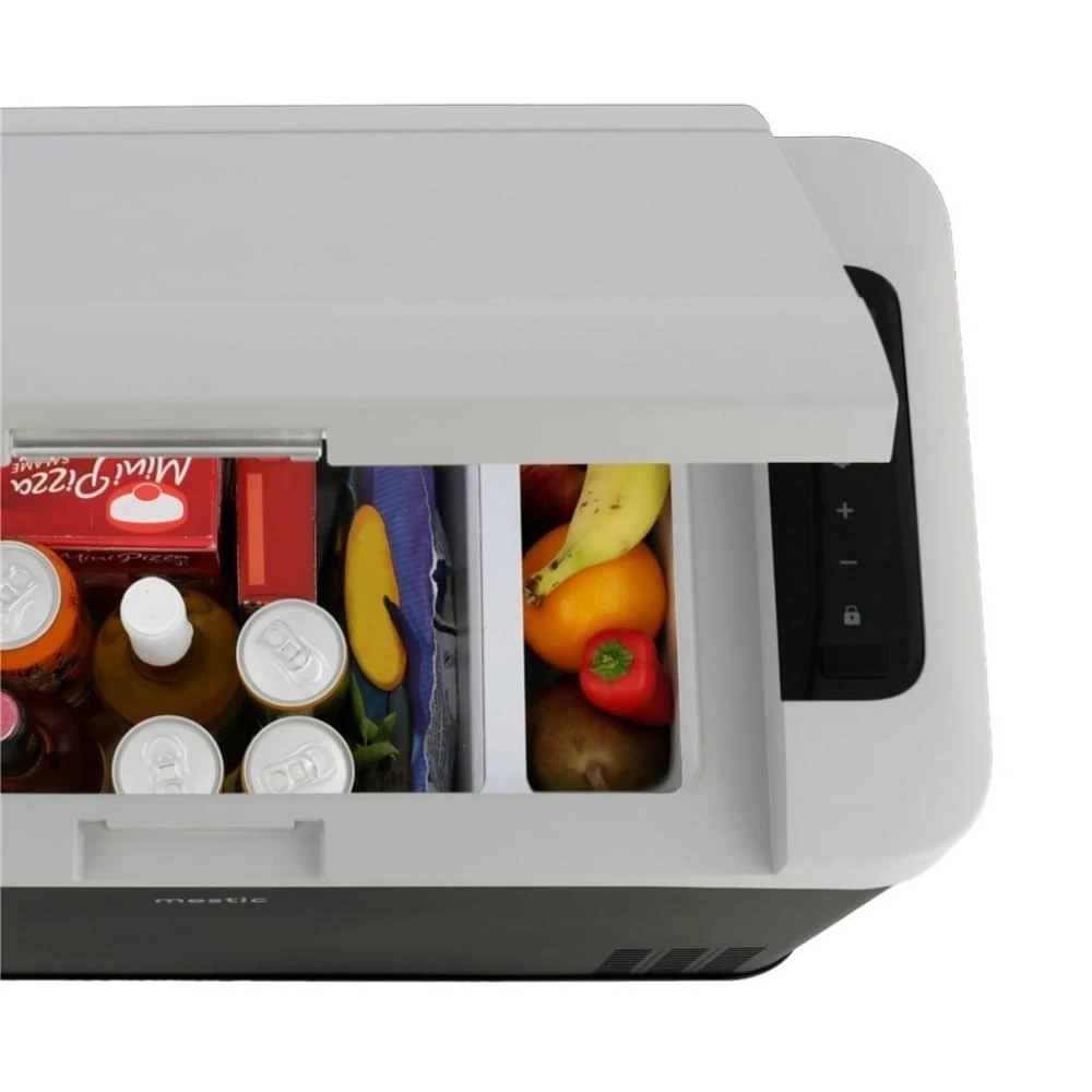 De MCC-25 AC/DC Compressor Koelbox kan aangesloten worden op 12V en 24V. Op deze manier kun je deze elektrische koelbox van Mestic in de auto, vrachtauto, caravan of gewoon thuis gebruiken. De koelbox kan ingesteld worden op temperaturen tussen de +10°C en -18°C en houdt hiermee je eten en drinken lekker koel op de temperatuur die jij instelt. Deze Mestic koelbox is hoog genoeg om 1L flessen en wijnflessen in te kunnen plaatsen. Wil je de koelbox op 230V gebruiken dan heb je nog wel een adapter nodig.