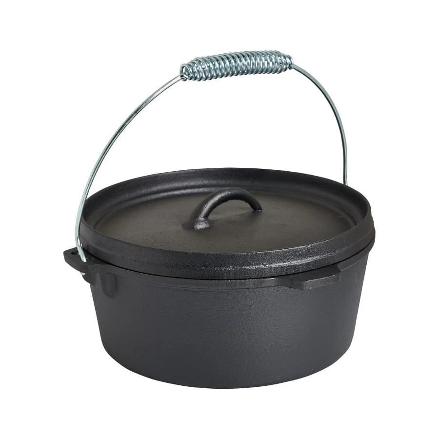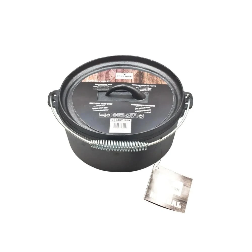 Bakken, braden of sudderen doe je in deze gietijzeren pan met deksel. Met zijn inhoud van 4 liter zijn gerechten als een stoofpot of soep ook geen probleem. Naast dat de gietijzeren pan twee handvatten heeft, heeft hij ook een hengsel zodat je hem ook boven open vuur kunt gebruiken.