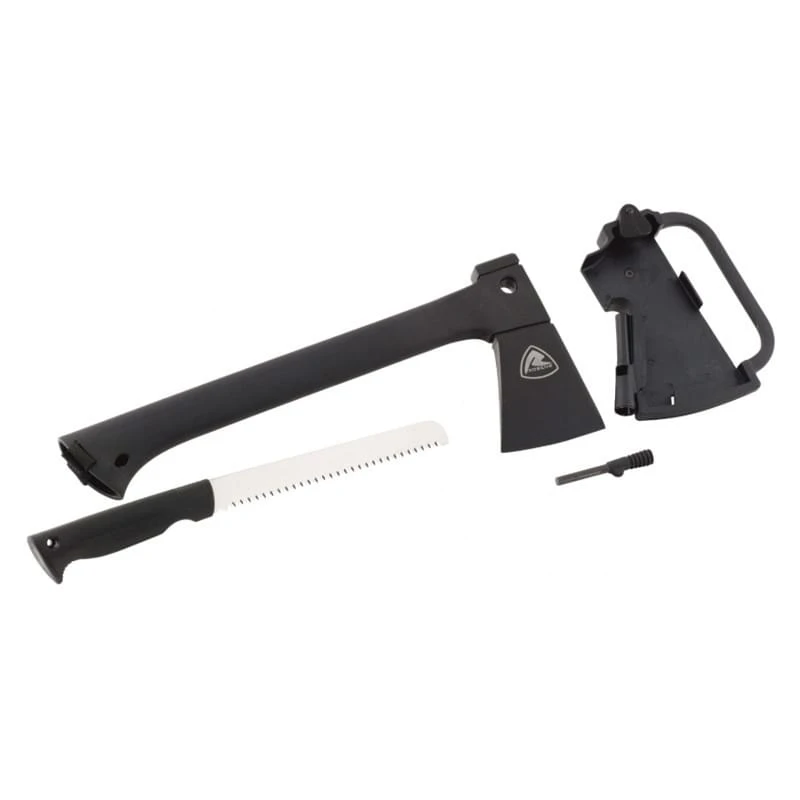 De bijl heeft een polyamide handvat. Dit materiaal is lichtgewicht, maar toch sterk. Zo sleep je niet teveel gewicht mee. Het bijlblad is gemaakt van roestvast staal en is voorzien van een coating. De nylon huls is naast een firesteel ook voorzien van een handvat en een afneembare riemlus.