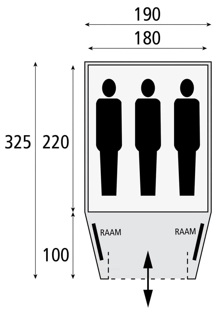 - Kuipgrondzeil in de voortent is verwijderbaar