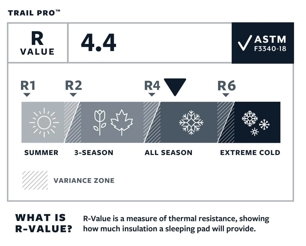 Wanneer je de nieuwe mat gaat gebruiken kan het de eerste paar keer iets langer duren voordat de mat vol met lucht zit. Des te vaker je de Trail Pro gaat gebruiken des te sneller gaat dit. Ook kan je met deze slaapmat prima 4-seizoenen op reis.