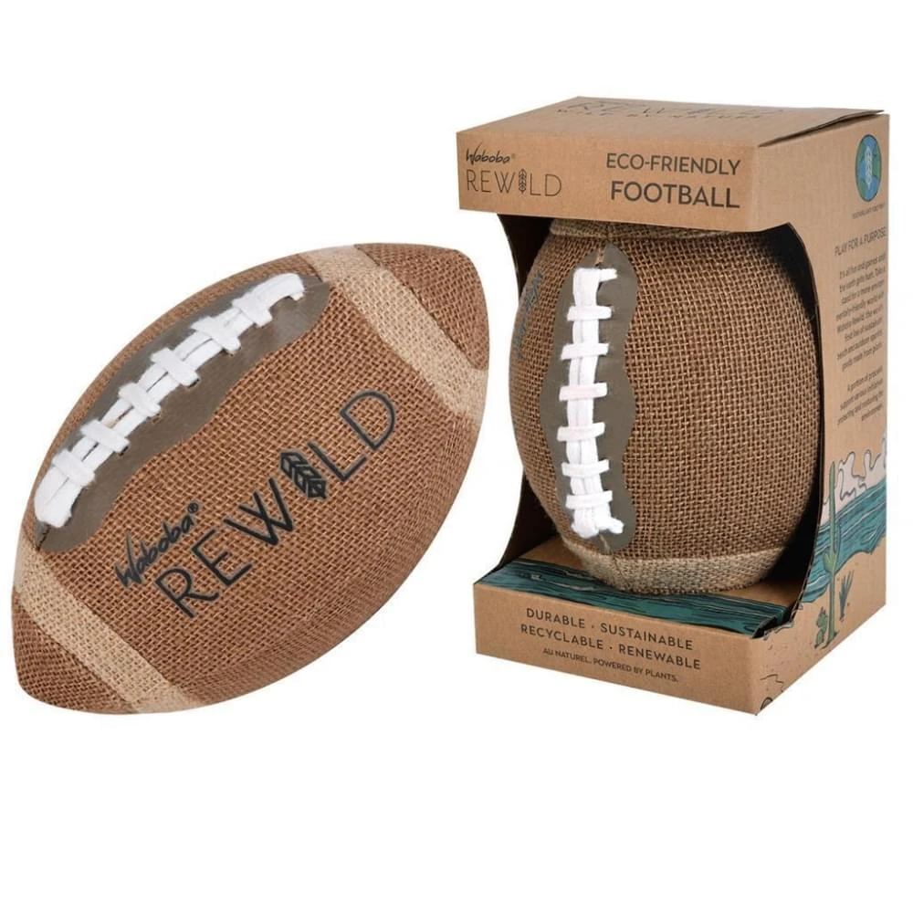 De Rewild American Football is milieuvriendelijk en gemaakt van natuurlijke materialen zoals de juteplant en de rubberboom. Ook de verpakking van de American Football is eco vriendelijk en gemaakt van gerecyclede materialen. Waboba schenkt een deel van de opbrengst aan organisaties de zich inzetten voor het herstel en de bescherming van het milieu.