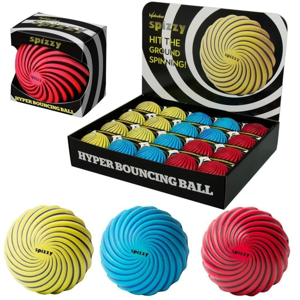 De Spizzy bal van Waboboa heeft groeven voor een te gekke spin en is een hyper stuiterende bal. De bal heeft een doorsnede van 6,5 cm.