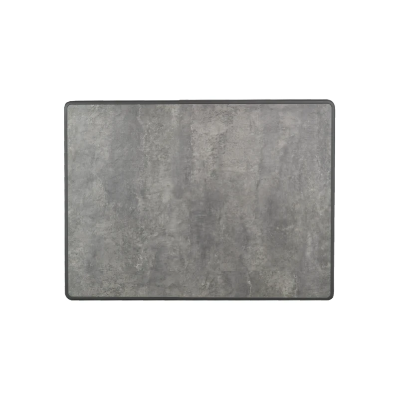 Het tafelblad is gemaakt van Sevelit. Dit is een materiaal dat bestaat uit spaanplaat met een stevige melamine coating. Hierdoor is het blad zowel watervast als hittebestendig. Om vuil en beschadiging tegen te gaan zijn de tafelranden afgedekt met een slagvaste rand gemaakt van polypropyleen.